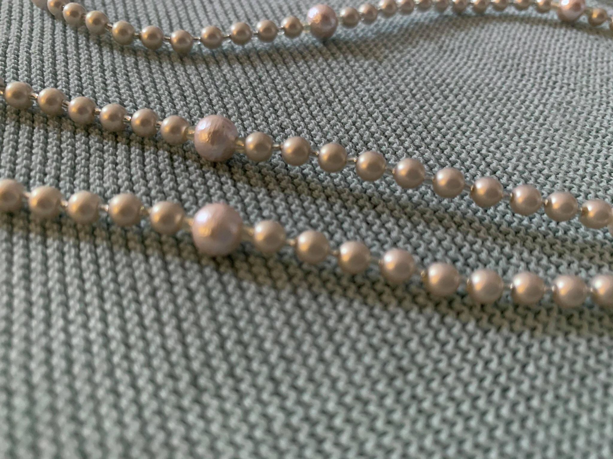 ビーズとビーズの間に、光沢のあるガラスの極小ビーズを入れているので、滑らかな曲線になり、ビーズ同士が摩擦でダメージを受けません。